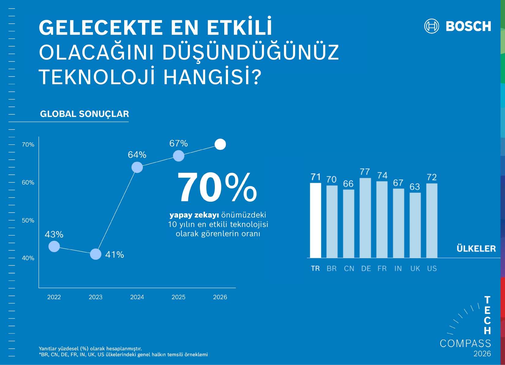 “Türkiye, genç ve dinamik yapısı ile yeni teknolojilerin hızla benimsendiği bir pazar. Bosch Tech Compass 2026 sonuçlarının yeni ve yapıcı tartışmalara zemin hazırlamasını hedefliyoruz.”