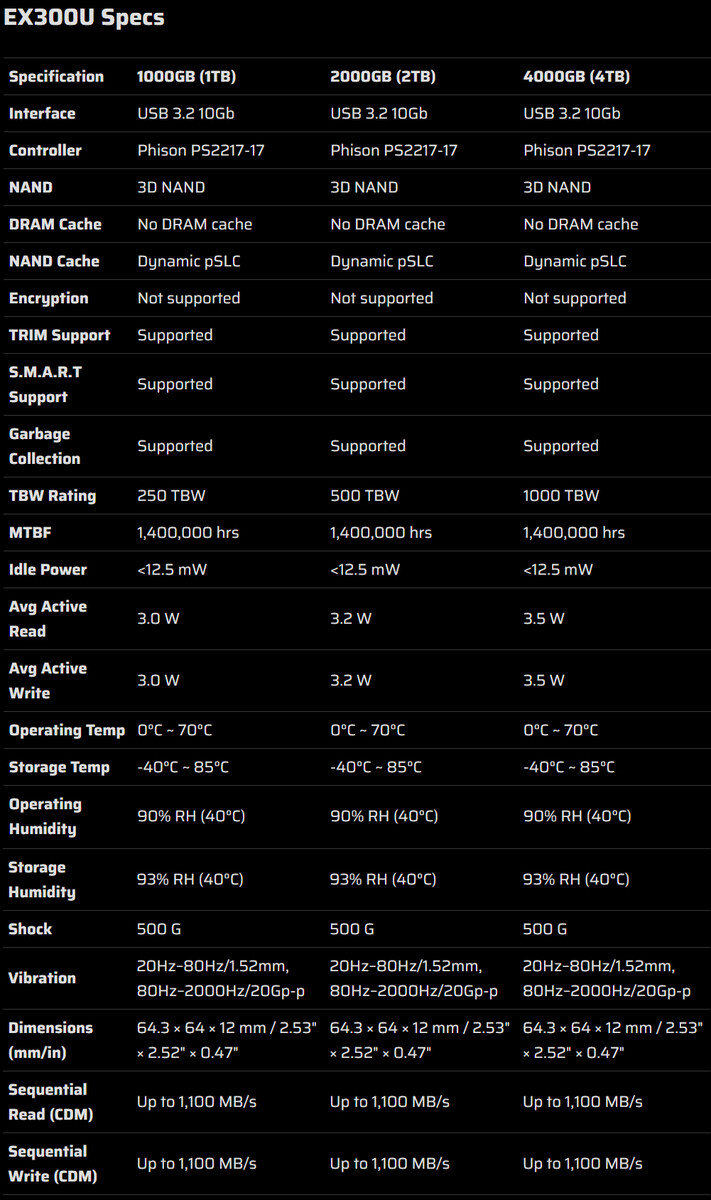EX300U, darbeye dayanıklı gövdeye, kompakt form faktörüne ve hafif tasarıma sahip. Corsair, cihazın cebinize rahatlıkla sığacak kadar küçük olduğunu söylüyor.
