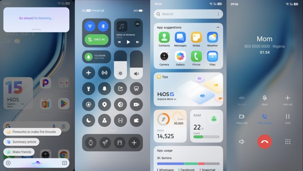 Kullanıcı arayüzüne bakıldığında, HiOS 15, %40 oranında azaltılmış önceden yüklenmiş uygulama sayısıyla daha temiz ve sade bir deneyim sunmayı hedefliyor. Yeni animasyonlar ve geçiş efektleri, AI tarafından oluşturulan özel duvar kağıtları ve minimalist simgelerle birleşerek görsel bir yenilik sunuyor. Uygulama geçiş hızlarının %15 oranında artırılması ise genel kullanıcı deneyiminin daha akıcı ve hızlı hissedilmesine katkıda bulunuyor.