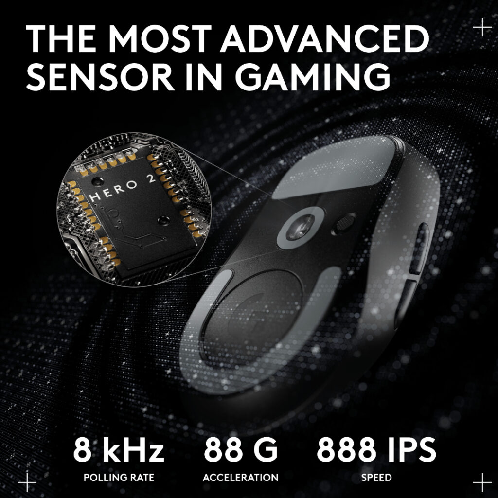 Fare, Logitech’in en gelişmiş algılayıcısı olan Hero 2 sensörü ile donatılıyor. Bu sensör, 44.000 DPI’a kadar çözünürlük desteği sunuyor. Sadece hassasiyet değil, aynı zamanda 88 g hızlanma ve 888 IPS hız gibi üst seviye performans değerleriyle dikkat çekiyor.